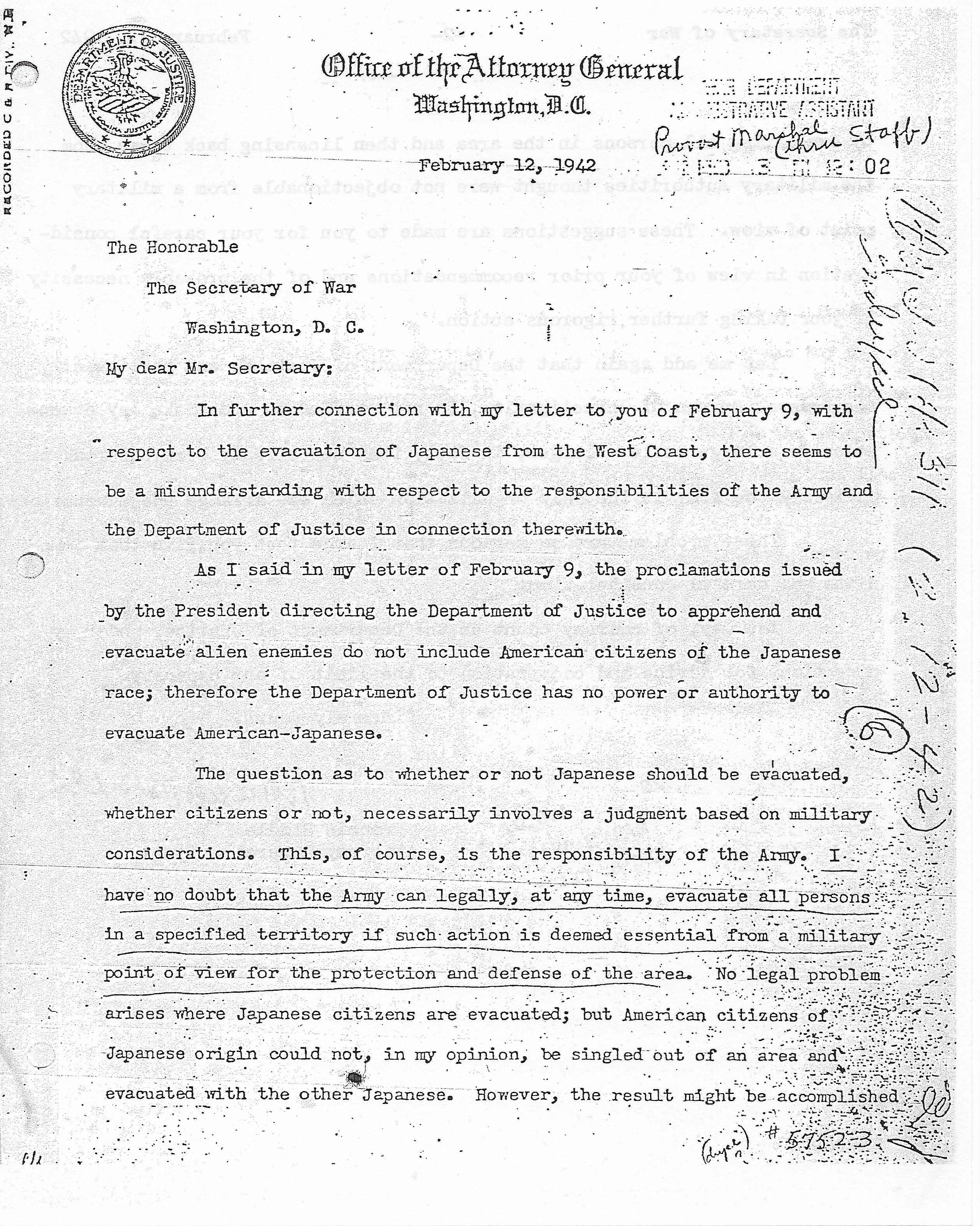 -Roger Baldwin's, ACLU national director, response to EO9066