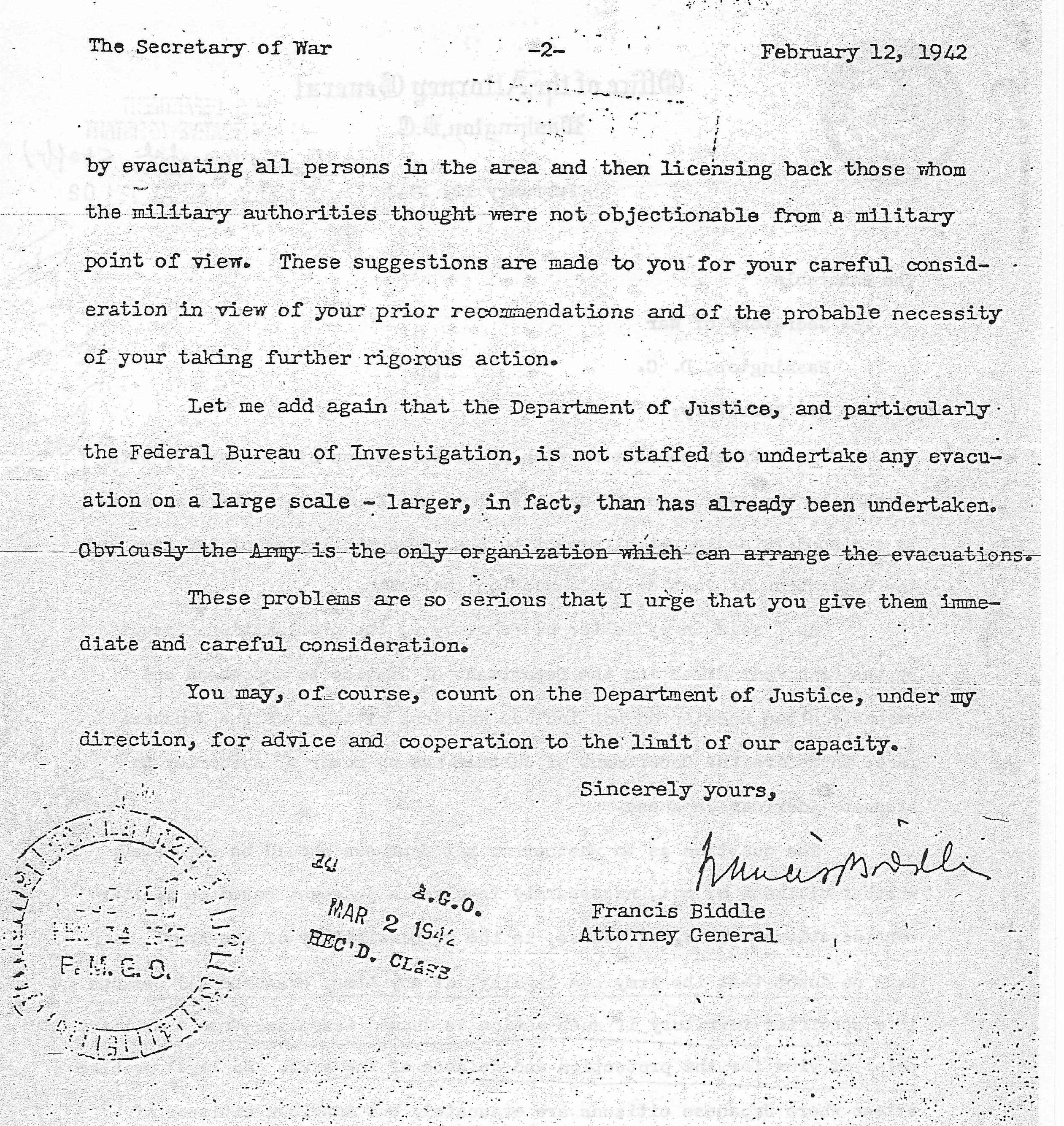 "This unprecedented order is open to grave question on the constitutional grounds of depriving American citizens of their liberty and use of their property without due process of law … the protection of our country in war-time can be assured without such a wholesale invasion of civil rights and without creating a precedent so opposed to democratic principle."